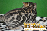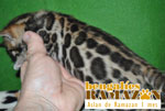 Aquí tiene dos meses y ya vemos el crecimiento de las orejas, que están en desproporción respecto la cabeza, se ven más grandes. Ha entrado en la etapa de los "fuzzies", en la que abundan los pelitos de camuflaje que restan nitidez al manto y desdibujan las rosetas. Los tonos pierden un poco la intensidad respecto a la edad anterior. Los ojos tienen ese tono azul/verdoso, entrando en el cambio de color.