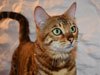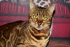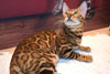 Asha es una hembra bengalí brown spotted de colores vivos y anaranjados sobre una base de manto crema claro. Muy buen contraste, buen tamaño de rosetas y buen contorno oscuro. Ojos verdes claros, super cariñosa y adorable.